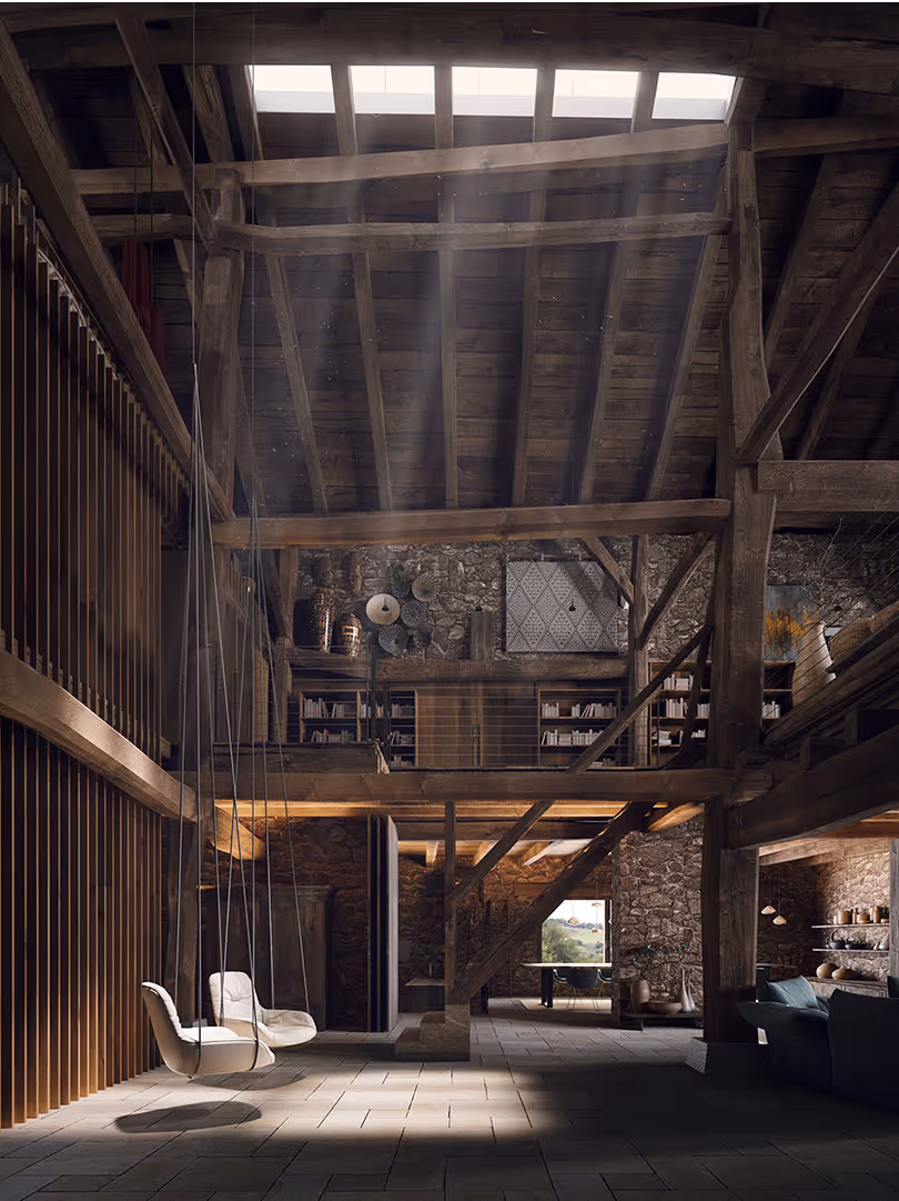 Set among the rolling hills of Gipuzkoa, this spectacular farmhouse has been reimagined to meet contemporary standards while preserving the rustic essence of the traditional Basque baserri. The interiors are reconfigured and restored, with original finishes and furnishings complemented by contemporary pieces that stand out like carefully chosen artworks within a timeless rural setting.